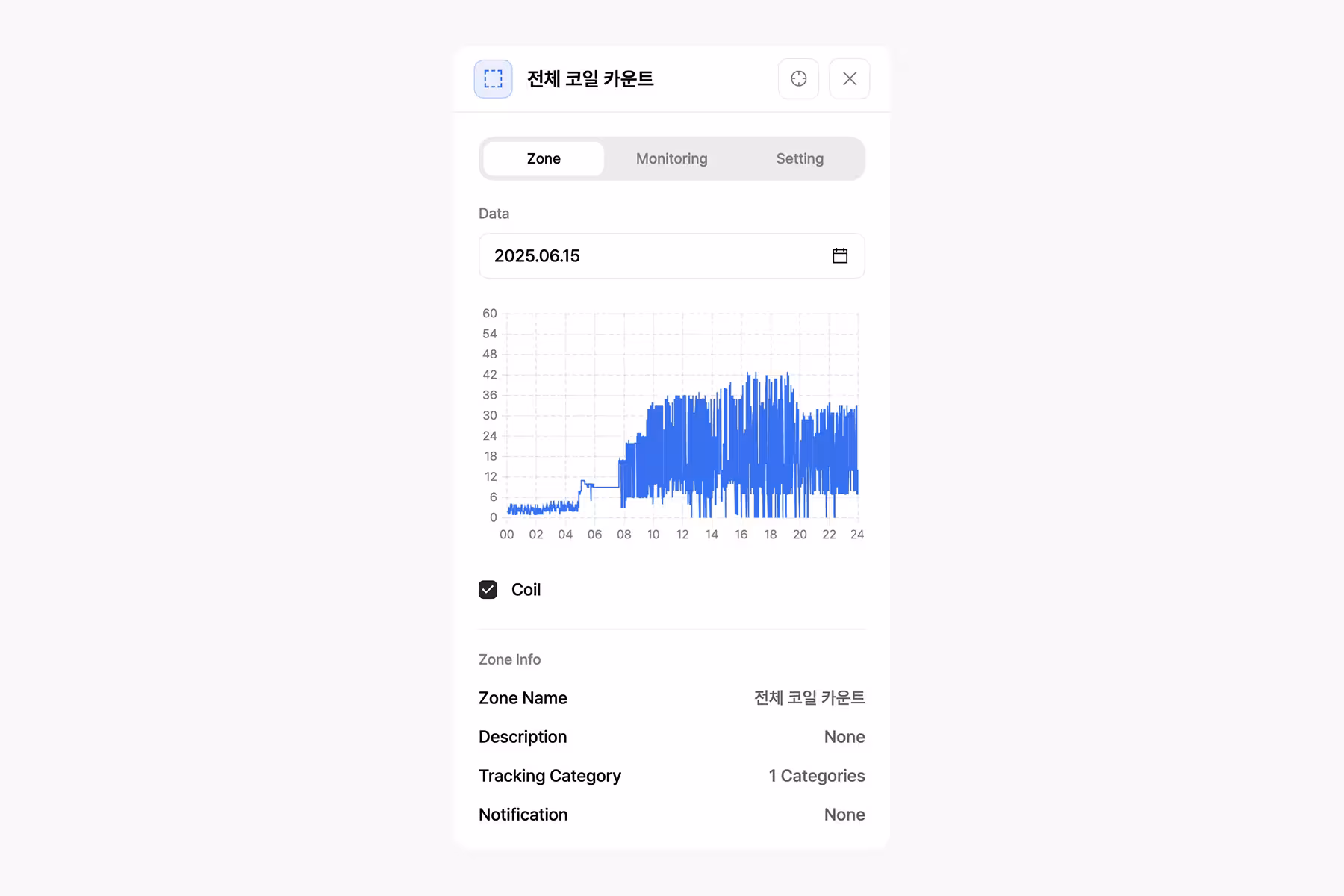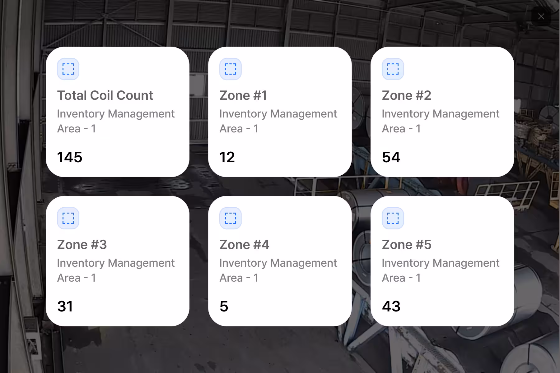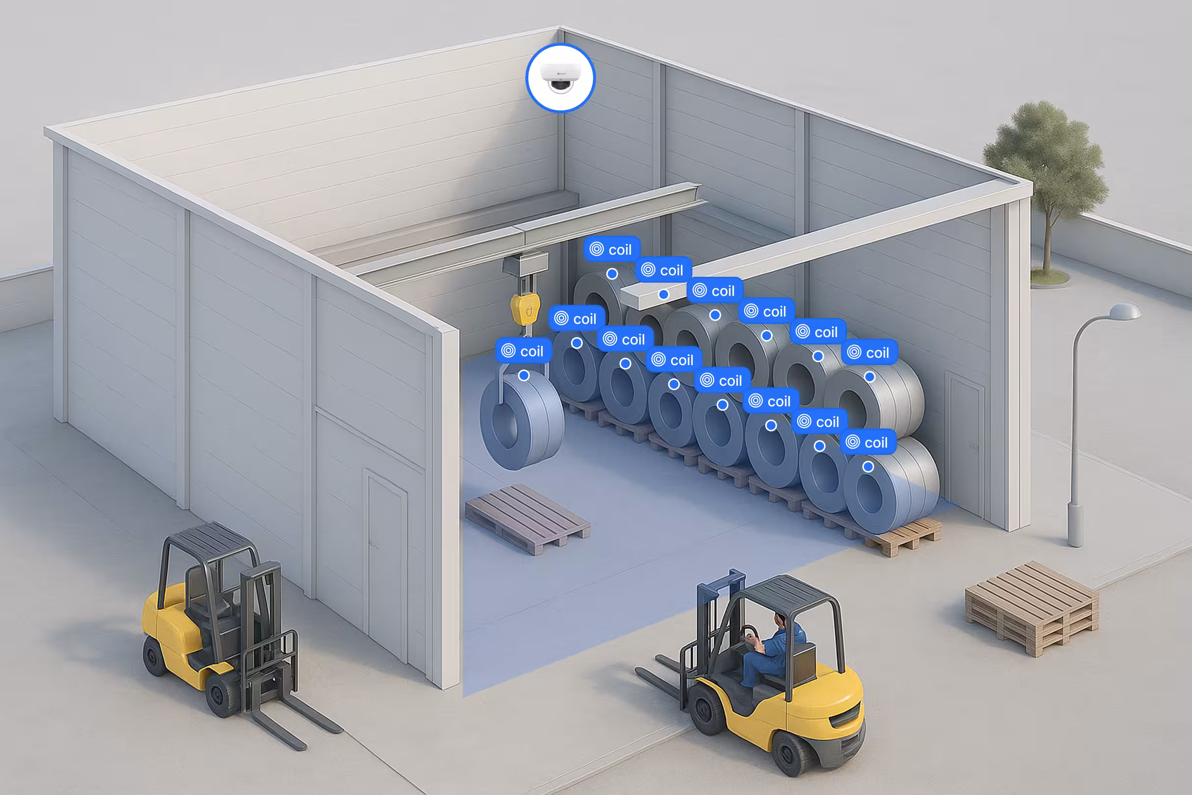 철강코일, 팔레트 등 중량 자산을 AI로 자동 인식하고 수량을 실시간 집계합니다.