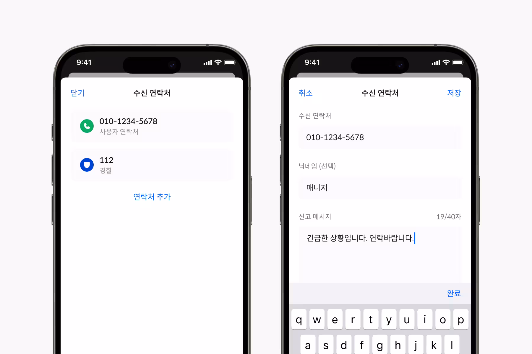 신고가 발생하면 112는 물론, 보호자나 지인 등 원하는 수신 대상을 동시에 지정할 수 있습니다. 하나의 신고로 여러 명에게 알림을 동시에 전송할 수 있어, 공공 대응과 개인 보호를 함께 지원할 수 있습니다.