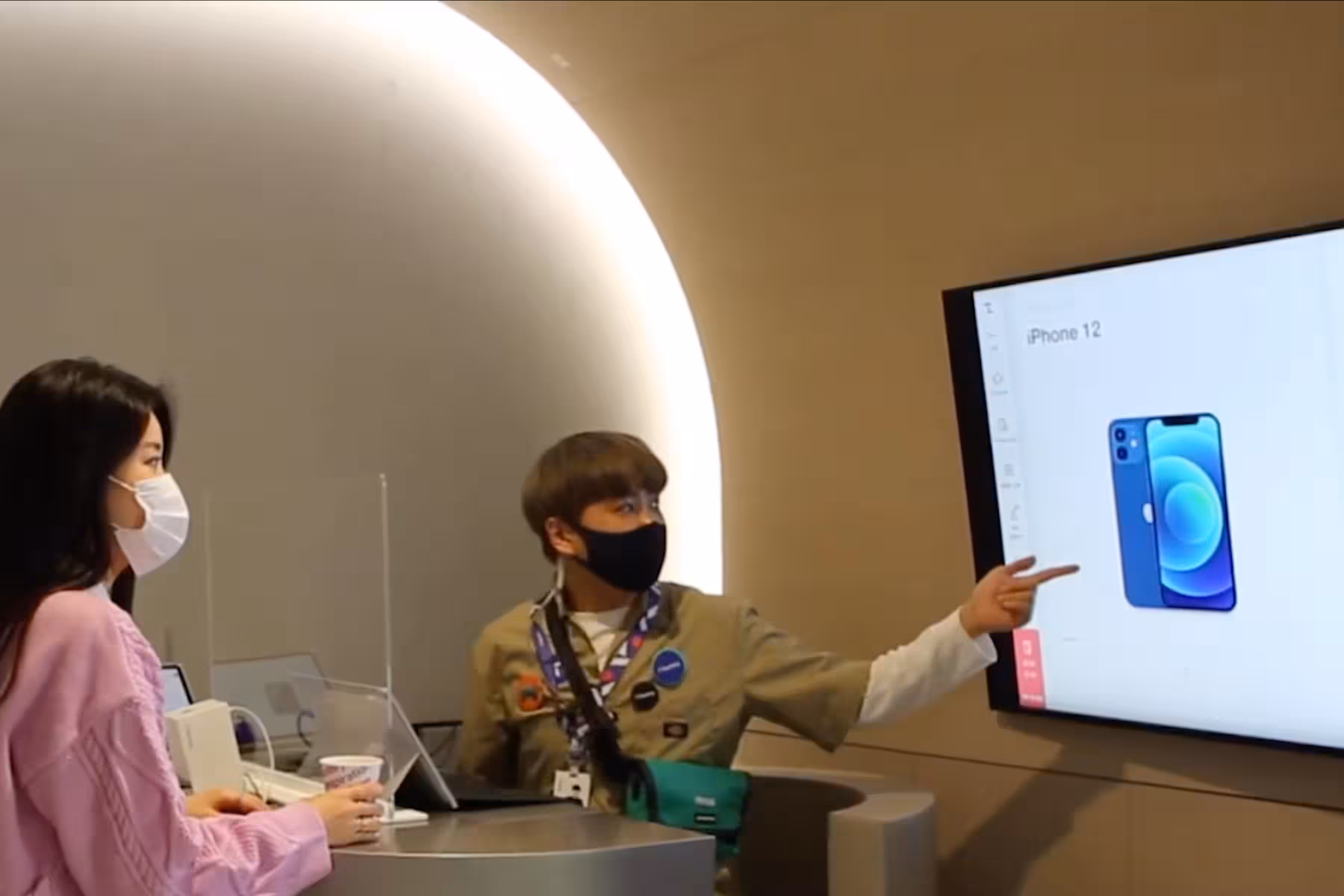 고객은 스마트폰을 손에 들고 자유롭게 조작하며 제품을 직접 체험할 수 있습니다. 와이어 고정 없이도 보안이 유지되도록 설계되어 사용 제약 없이 실사용에 가까운 경험을 제공합니다.