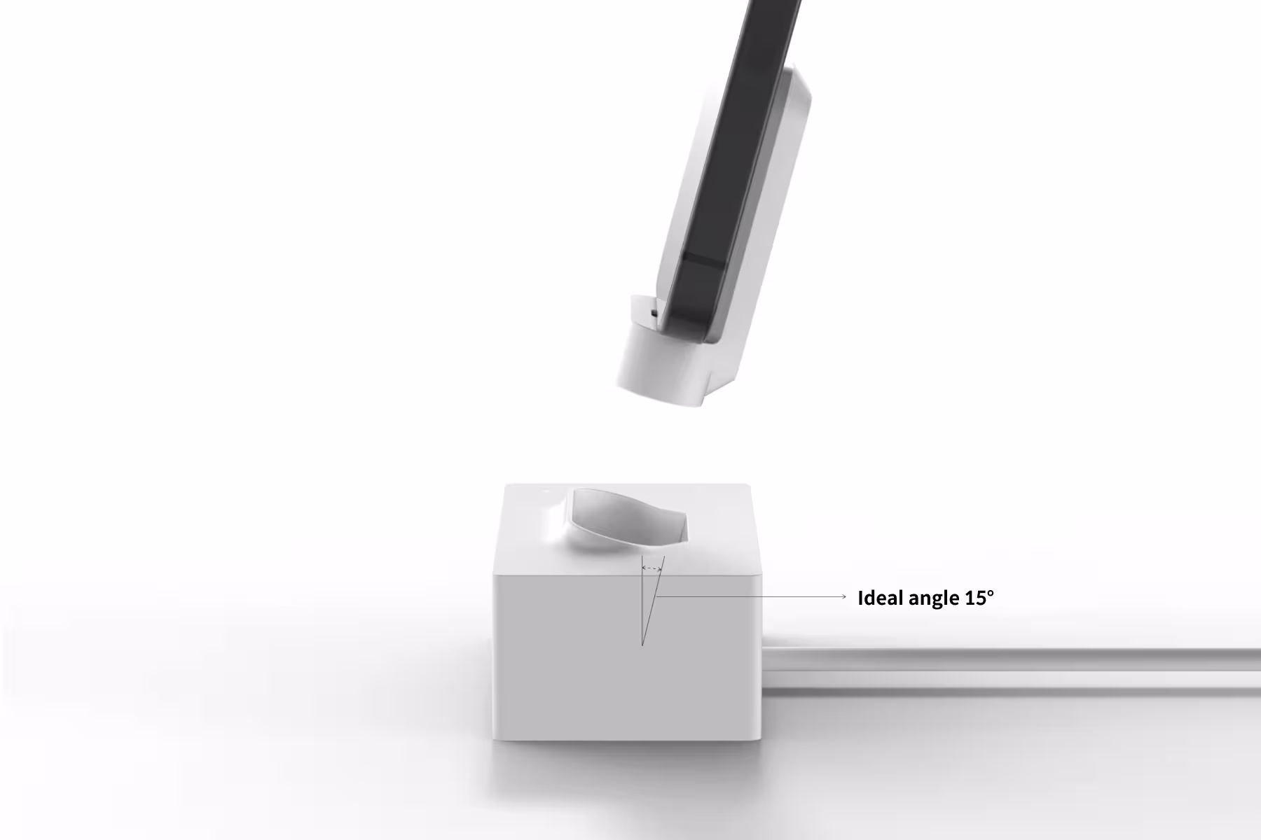 크래들은 단말기를 자연스럽게 들어 올리고 다시 거치할 수 있도록 15도 각도로 설계되어 있습니다. 체험이 반복되더라도 위치가 안정적으로 맞물려 매장 환경의 일관된 체험 흐름을 유지할 수 있습니다.