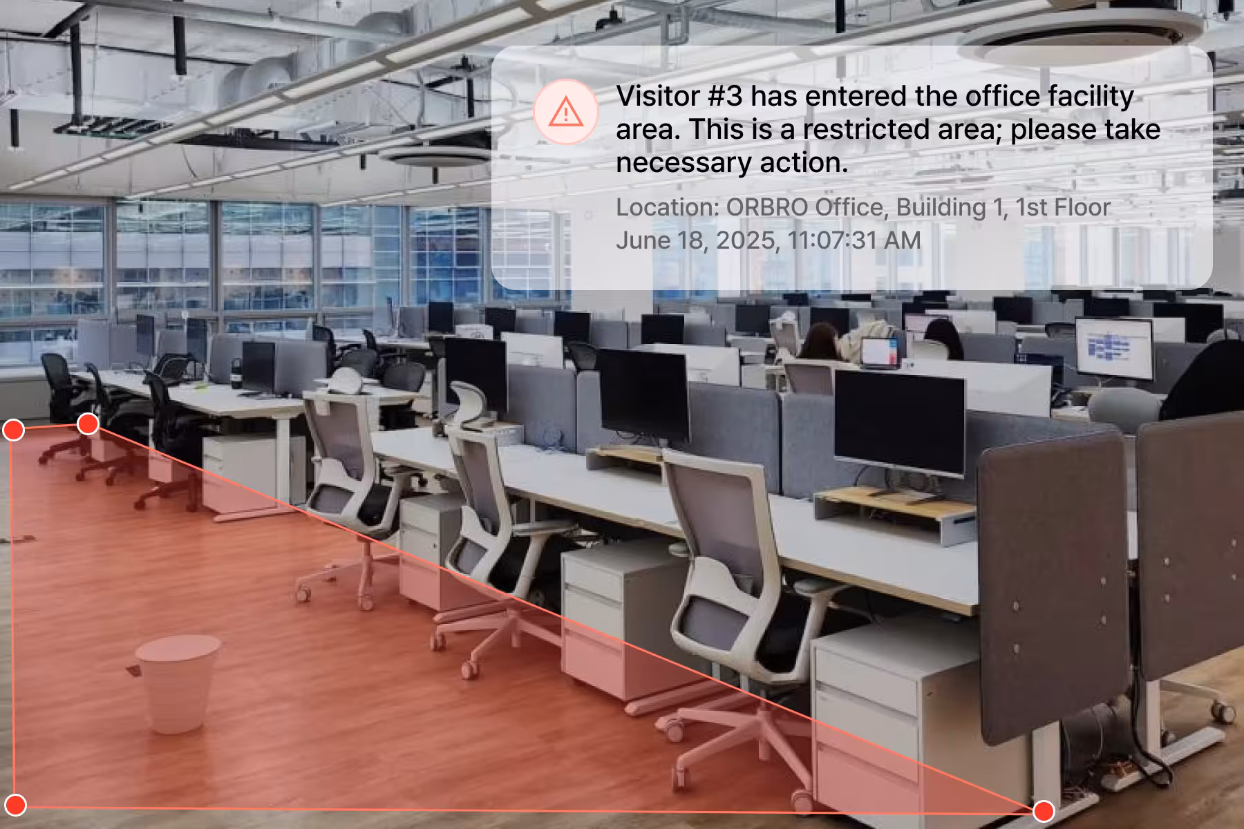 방문객의 스마트 출입증으로 구역 이탈을 자동 감지하고 즉시 알림을 전송합니다.